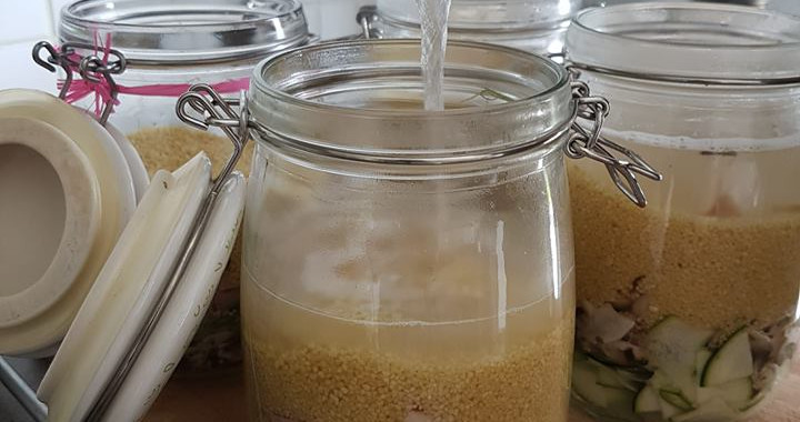 Zin een lekker, gezond en snel-klaar gerechtje? Probeer dan eens deze couscous in een bokaal! Je kan de bokaal de dag ervoor al klaarmaken, je hoeft alleen nog kokend water bij te voegen en wachten....